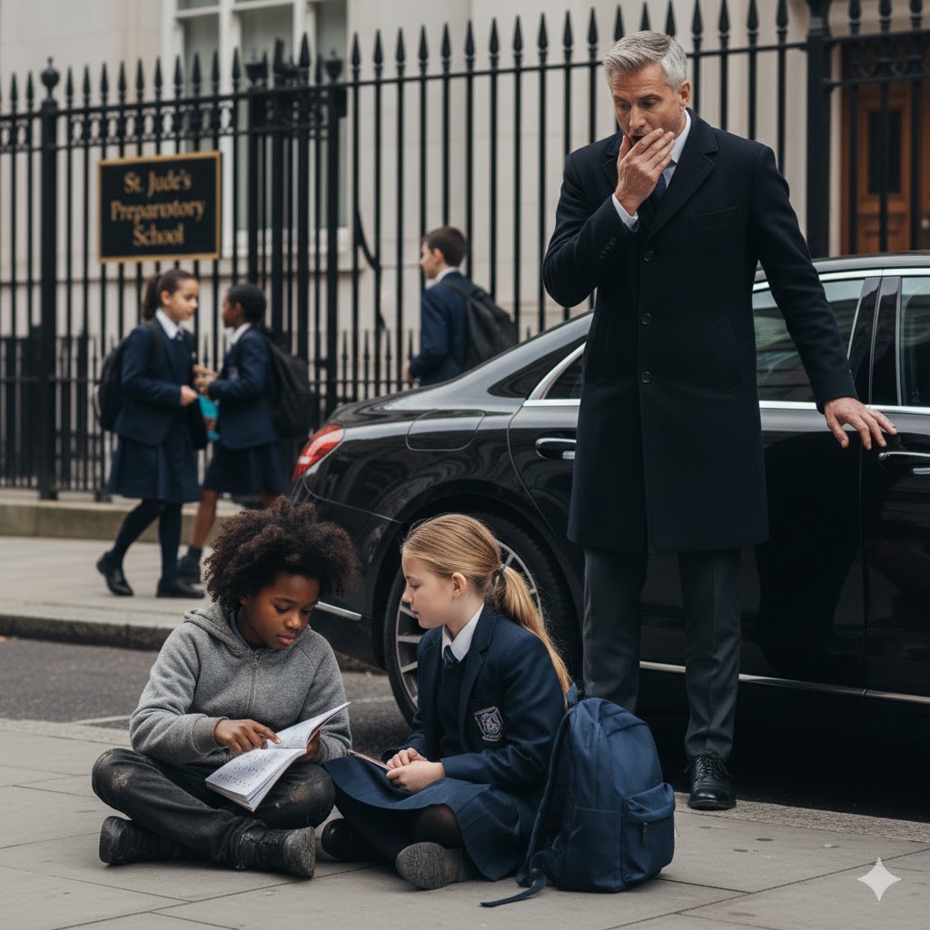Beside her sat a girl in ragged clothes, a backpack held together with duct tape at her feet. Her hair was unkempt, her shoes clearly too large. Homeless—Nathan recognized the signs immediately.