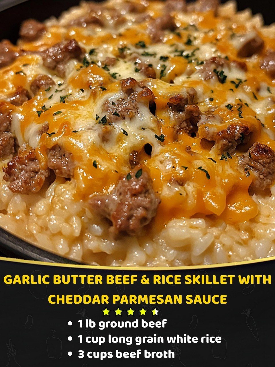 flavor-packed one-pan meal featuring juicy beef, fluffy rice, and a creamy cheddar-parmesan sauce—perfect for busy nights!
