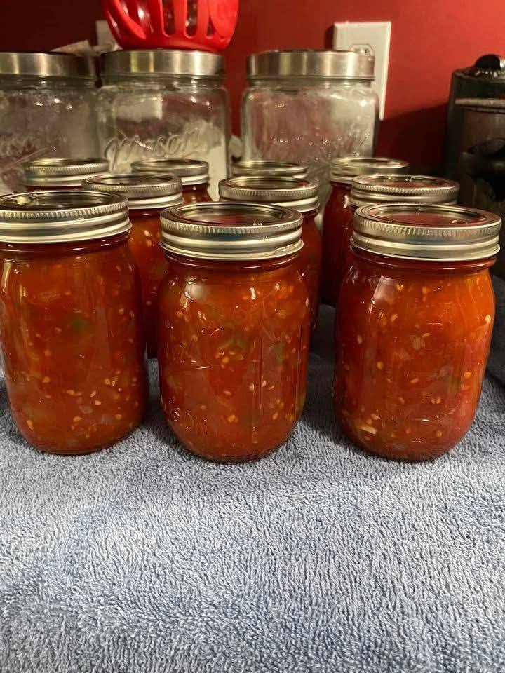 This recipe is a celebration of late-summer produce and old-school kitchen magic. With a gallon of tomatoes, plenty of peppers, and a tangy vinegar kick, it simmers into a rich, chunky salsa thatâs perfect for chips, tacos, or gifting in jars. The long simmer deepens the flavor, and the water bath seals in freshness for months to come.