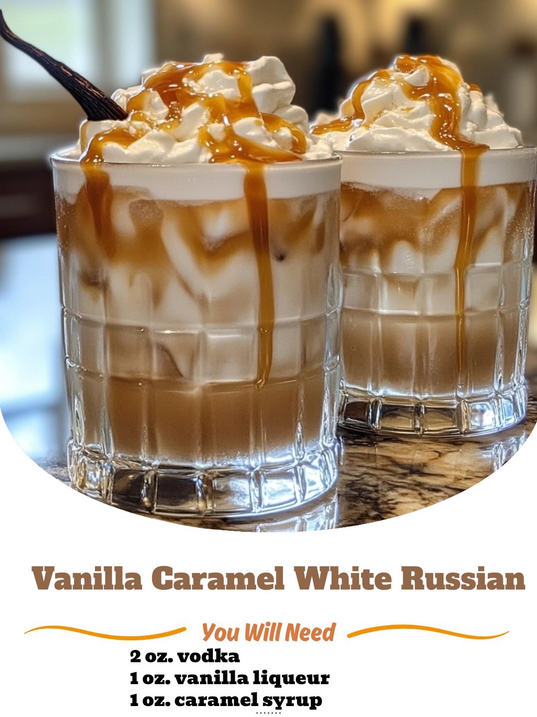 Indulge in the ultimate dessert cocktail. This twist on the classic White Russian combines rich coffee liqueur with sweet vanilla and decadent caramel for a perfectly creamy treat.